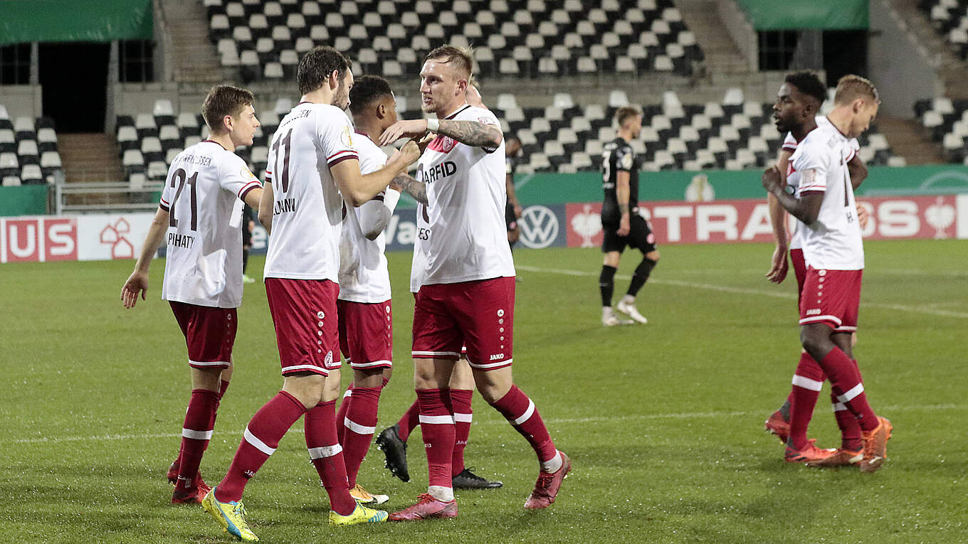 Fortuna Düsseldorf Rot Weiss Essen - Essen Germany 23Rd Dec 2020 Football Dfb Cup Rot Weiss Essen Fortuna Dusseldorf 2Nd Round At Stadion Essen Essen S Sandro Plechaty 2Nd From Left Is Happy After The 3 2 Victory Credit Marcel